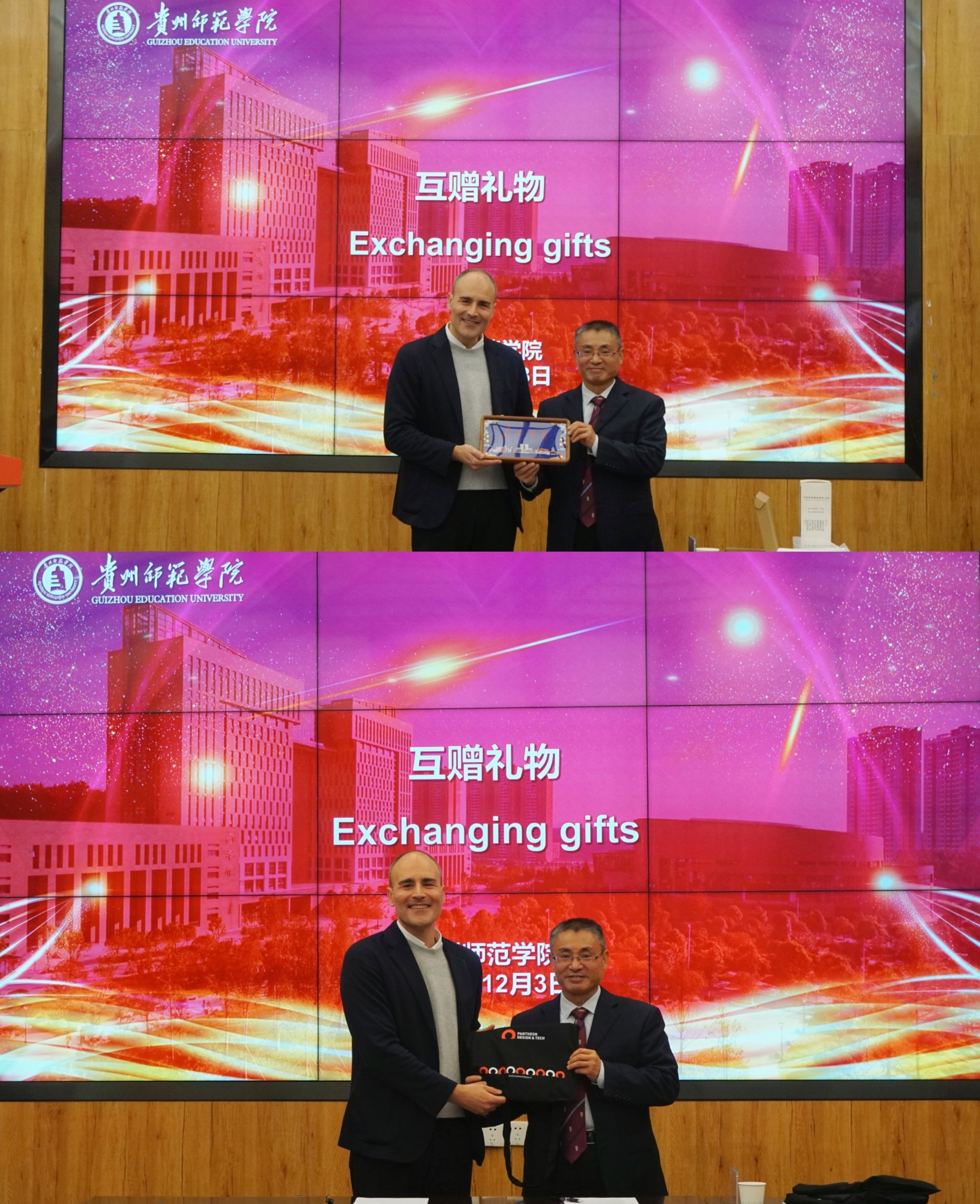 2025年12月3日上午,贵州师范学院与意大利万神殿设计与科技学院合作签约仪式在印山书院山骨讲堂举行。双方院校代表及相关部门负责人出席仪式,共同见证这一重要时刻。