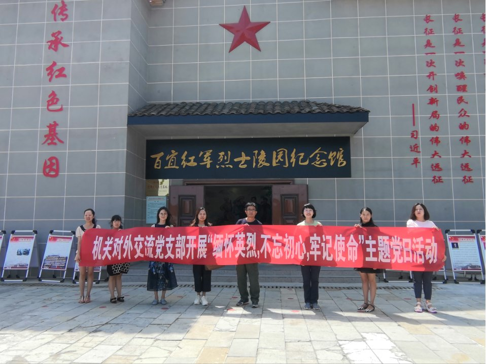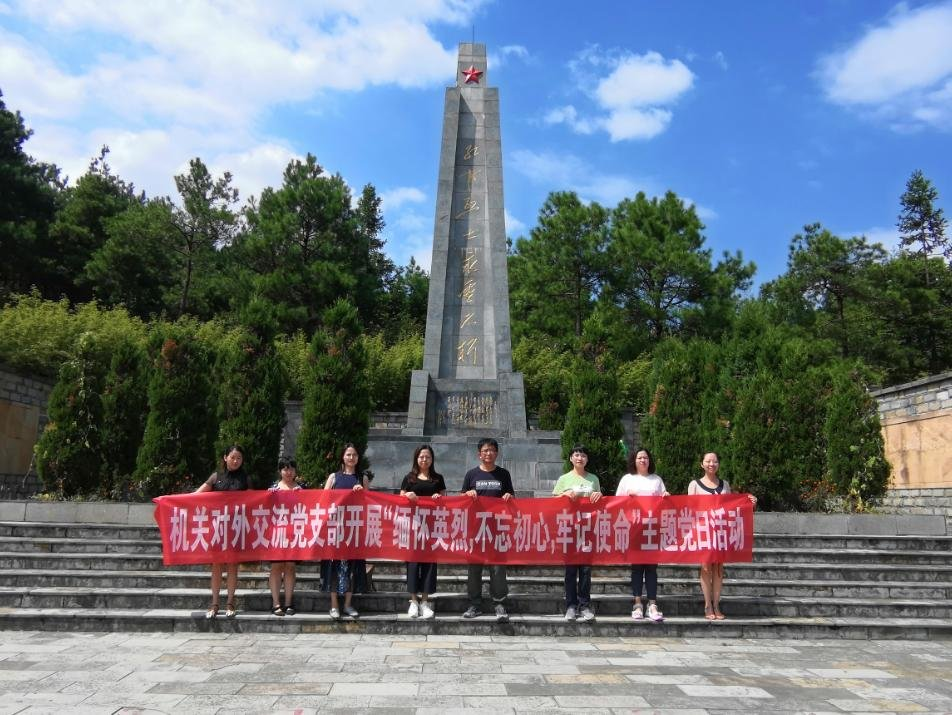 2020年8月28日,机关对外交流党支部组织党员前往乌当区百宜镇百宜烈士陵园开展“缅怀英烈,不忘初心,牢记使命”的主题党日活动,特邀统战部一同前往,共同缅怀先烈,敬仰历史,铭记历史,在祭奠中深刻感受先烈们抛头颅、洒热血,前仆后继,宁死不屈的精神,学习先烈们大无畏的英雄气概。